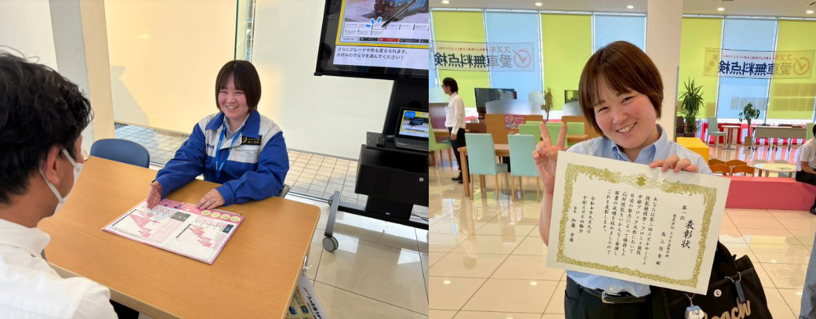 本学を2015年に卒業し、株式会社スズキ自販中部で活躍している 鈴木萌香さん(旧姓)が「第二回 スズキサービス技能競技会・フロント競技 中部ブロック大会」 で見事に第一位になりました。当該分野をリードするメインプレーヤーとして、今後もさらなるご躍進を期待しています。